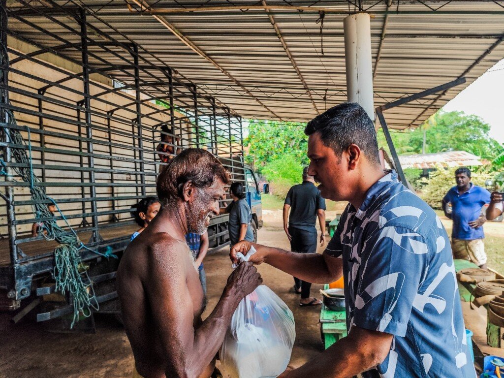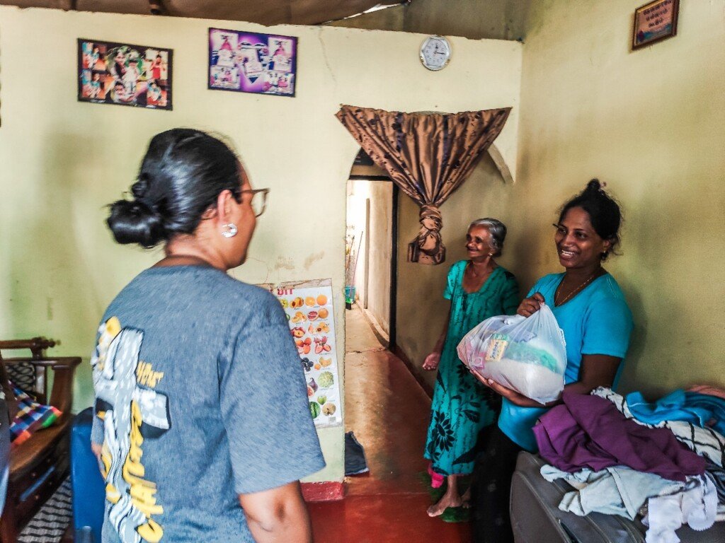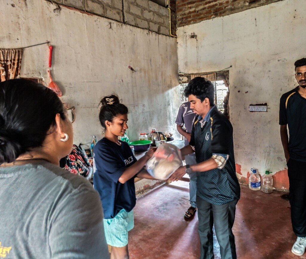 We had the opportunity to support 25 families in Lunuvila, a rural community where many work in a coconut factory. The recent floods severely affected the area, forcing families to leave their homes and seek temporary shelters.